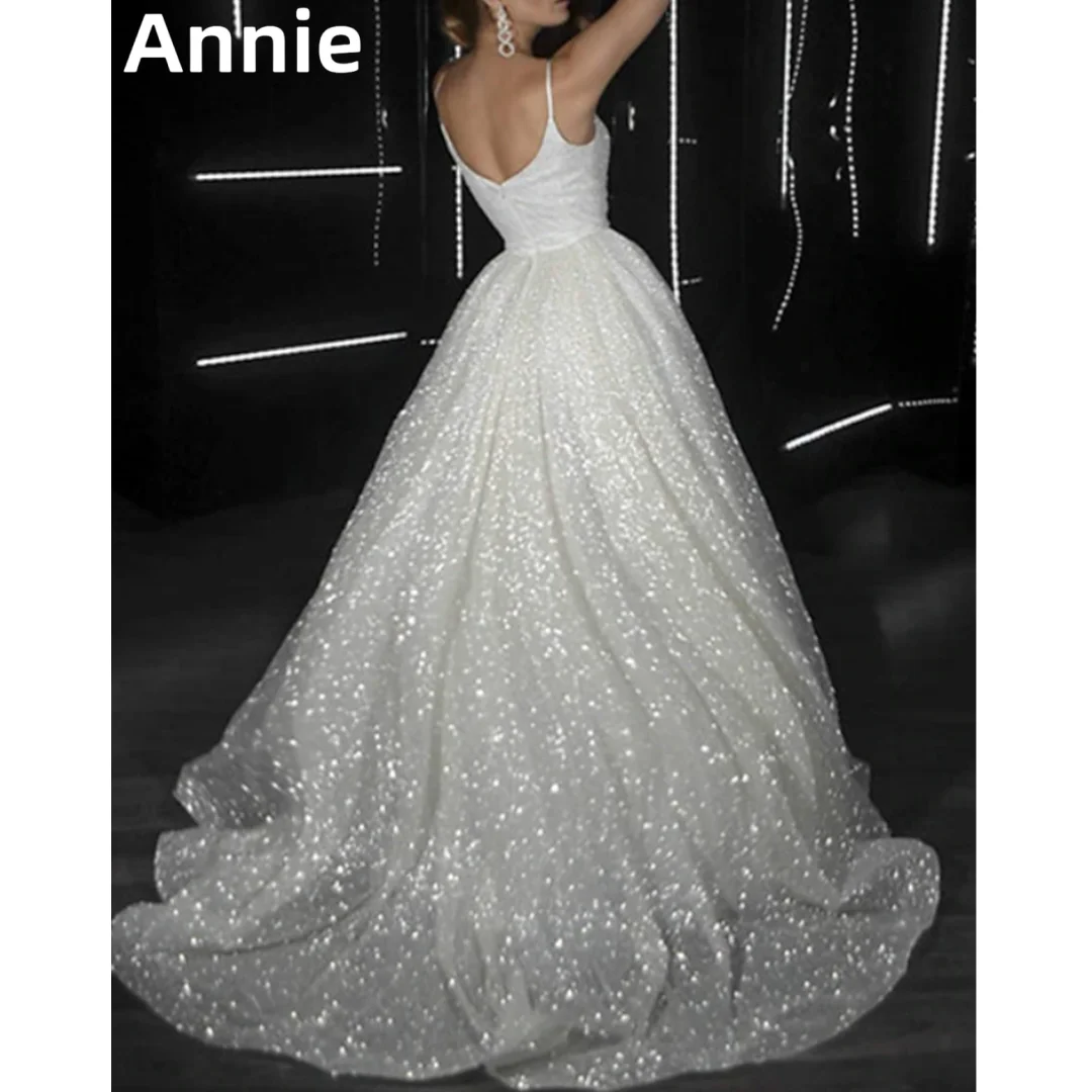 애니 스위트 글리터 무도회 드레스, 스파게티 스트랩, 얇은 명주 그물 이브닝 드레스, 공식 행사 파티 원피스